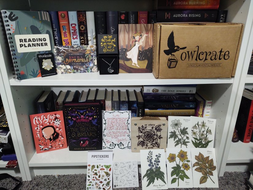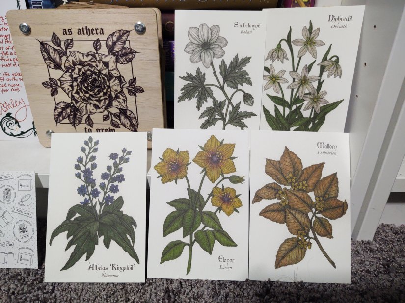 I think what I like most in the OwlCrate box this time is…honestly I don’t know. I really like the dandelion fluff necklace, the flower press, and the Middle Earth flower postcards. This is a really solid box. Having another reading planner is nice too. It basically has all the same content as the one OwlCrate included last year, but they just changed the art and coloring and style a little bit.