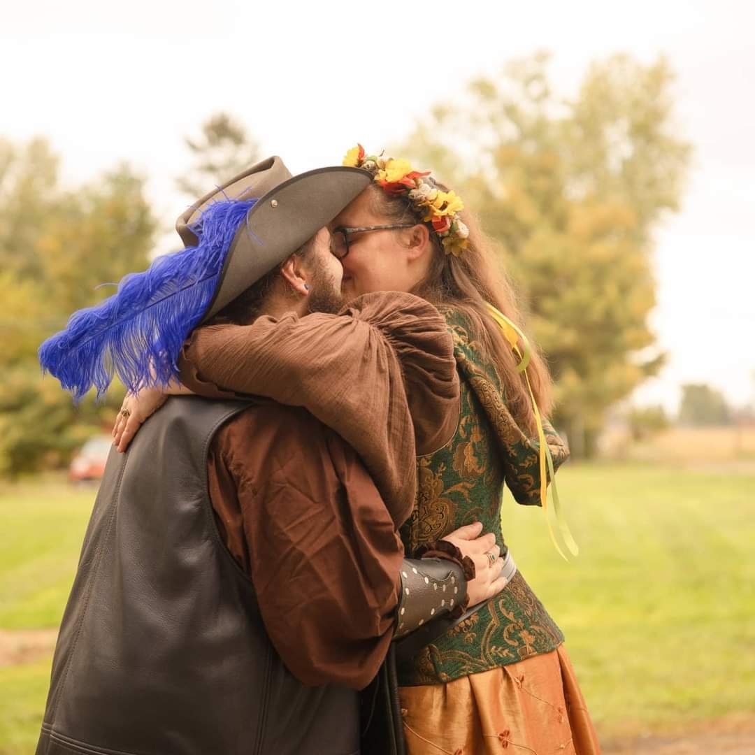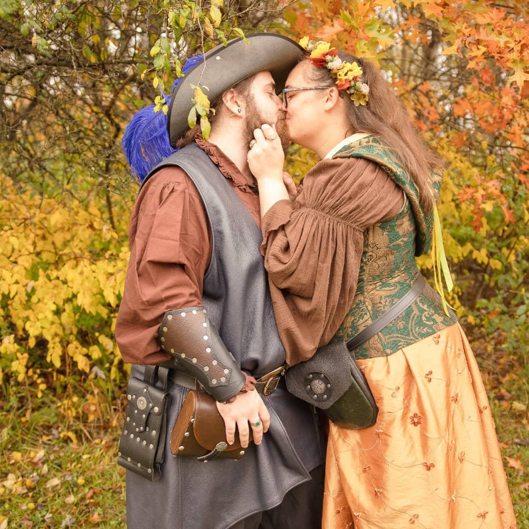 Since the wedding was the day before Halloween we expanded our theme from Renaissance Faire to just costume party. We even had buckets of candy on the tables at the reception and gave everyone bags so they could “trick or treat” and go home with lots of candy.