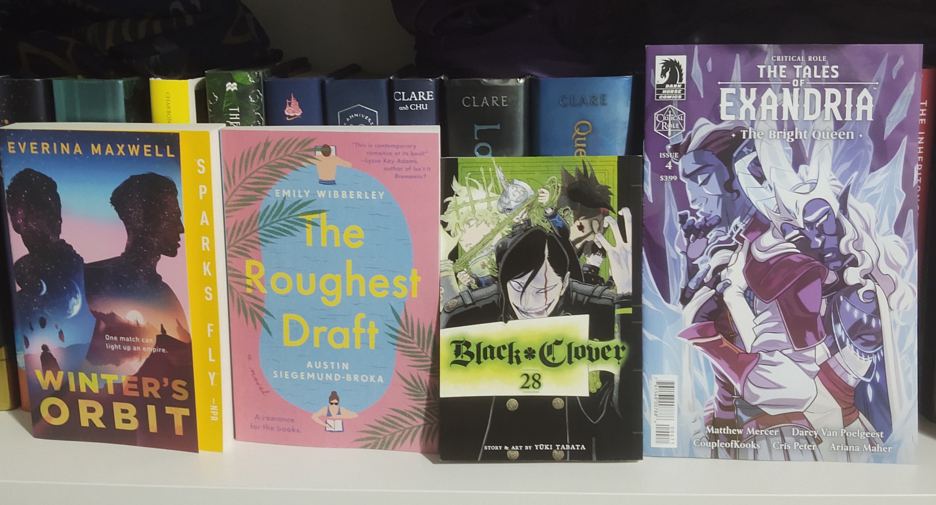 It’s The Bone Spindle by Lesley Vedder, This Woven Kingdom by Tahereh Mafi, Only a Monster by Vanessa Len, Fire Becomes Her by Rosiee Thor, The Thousand Eyes by A.K. Larkwood, The Ivory Key by Akshaya Raman, Daughter of the Moon Goddess by Sue Lynn Tan, Where the Drowned Girls Go by Seanan McGuire, The Lost Apothecary by Sarah Penner, The Tales of Exandria: The Bright Queen by Matthew Mercer, Darcy Van Poelgeest, CoupleofKooks, Cris Peter, and Ariana Maher, The Mighty Nein Origins: Caleb Widogast by Jody Houser, Liam O’Brien, Matthew Mercer, Selina Espiritu, Diana Sousa and Ariana Maher, Vox Machina Origins Series III Issue #5 by Matthew Mercer, Jody Houser, Olivia Samson, Diana Sousa, and Ariana Maher, The Starless Crown by James Rollins, Legendborn by Tracey Deonn, My Hero Academia Vol 30 by Kohei Horikoshi, The Atlas Six by Olivie Blake, One for All by Lillie Lainoff, League of Liars by Astrid Scholte, Loveless by Alice Oseman, Blood Scion by Deborah Falaye, A Far Wilder Magic by Allison Saft, Winter’s Orbit by Everina Maxwell, The Roughest Draft by Emily Wibberley and Austin Siegmund-Broka, Black Clover Vol 28 by Yuki Tabata, and The Tales of Exandria: The Bright Queen Issue # 4 by Matthew Mercer, Darcy Van Poelgeest, Mildred Louis, CoupleofKooks, and Cris Peter.