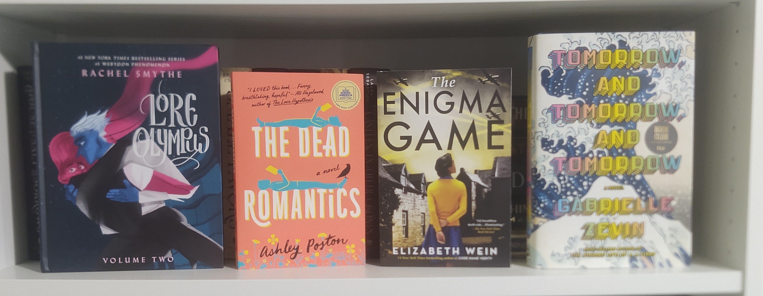 Okay, we have Tome of Heroes by Kobold Press, Edgedancer by Brandon Sanderson, My Hero Academia: Team-Up Missions Vol 2 by Yoko Akiyama, My Hero Academia Vol 31 by Kohei Horikoshi, The Game Master’s Book of Traps, Puzzles and Dungeons by Jeff Ashworth, Kyle Hilton, Jasmine Bhullar, and Three Black Halflings, Lore Olympus Volume 2 by Rachel Smythe, The Dead Romantics by Ashley Poston, The Enigma Game by Elizabeth Wein, Tomorrow and Tomorrow and Tomorrow by Gabrielle Zevin, Heartstopper Volume 3 by Alice Oseman, Nettle & Bone by T. Kingfisher, A Psalm for the Wild-Built by Becky Chambers, A Prayer for the Crown-Shy by Becky Chambers, Zachary Ying and the Dragon Emperor by Xiran Jay Zhao, Theo Tan and the Fox Spirit by Jesse Q. Sutanto, Mr. Malcolm’s List by Suzanne Allain, Dreamer’s Pool by Juliet Marillier, Tower of Thorns by Juliet Marillier, and Den of Wolves by Juliet Marillier.