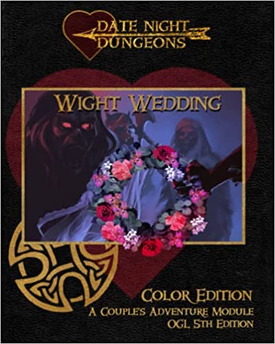 Welcome to Wight Wedding, the second in Urban Realms’ series of Date Night Dungeons. This color version of the book for 5th Edition has the tokens and 10 maps in the back in color. Take them out and use them during play for some extra pizazz. This is the first module where the players have two class options.My husband, Tom, and I have been playing role-playing games together for twenty years. We get together with friends around a table and enjoy a slice of fantasy and adventure. But in all those years we’ve never come across games specifically made for couples to play together. We wanted something where we could enjoy a little romance and fall in love all over again, so we created Date Night Dungeons.