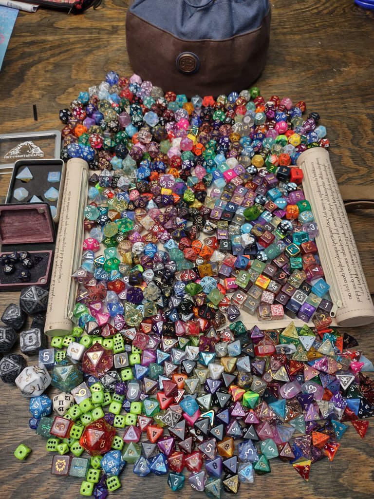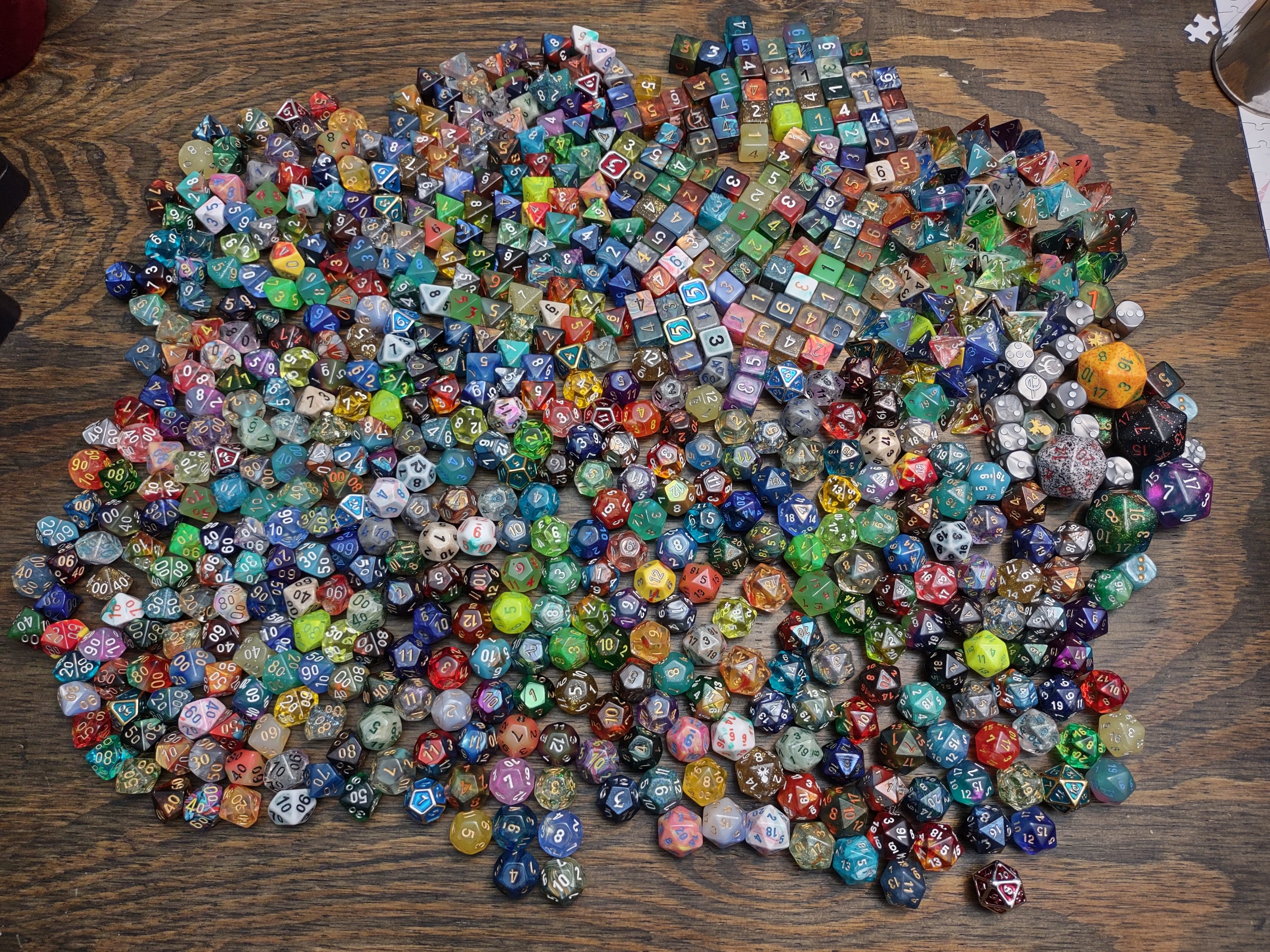 You would be correct in not assuming this is all my dice. There are some in various places around the house as well. Rolling physical dice is my most favorite part of any game I play that lets me use them. TTRPGs are a main one of course but a lot of other games use just dice, such as Zombie Dice, or classic Yahtzee.