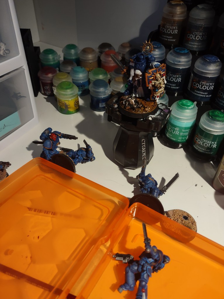 Painting: So since I have been painting the tokens for now it’s got me painting some of my miniatures as well. I started back up on the small group of Ultramarines I had purchased a while ago.