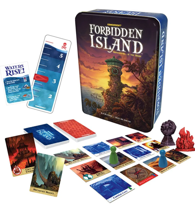 You and your team can be the first to breach the borders of the Archeans’ ancient mystical empire in the collaborative card game Forbidden Island, by Gamewright. In this game, teamwork proves essential to locate the Earth Stone, the Statue of the Wind, the Crystal of Fire, and the Ocean’s Chalice as the Island floods beneath your feet. Adventure… if you dare!