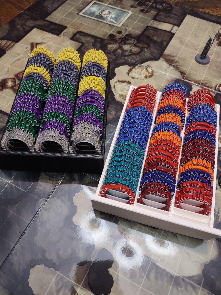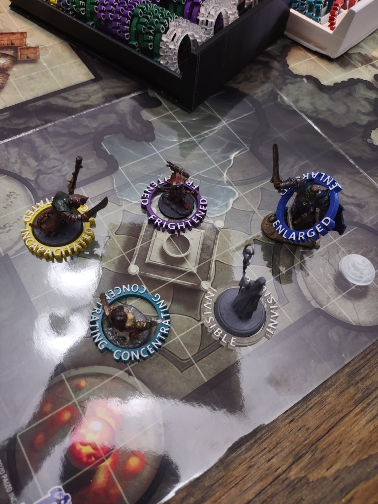 You can hang these condition rings on the miniatures being affected by the condition, and that is an easy way to keep track of what is going on. We don’t tend to use the Invisible ring much, because for the player characters, we often print a secondary copy of the miniature in clear resin. But it’s still useful to have for NPCs and enemies.