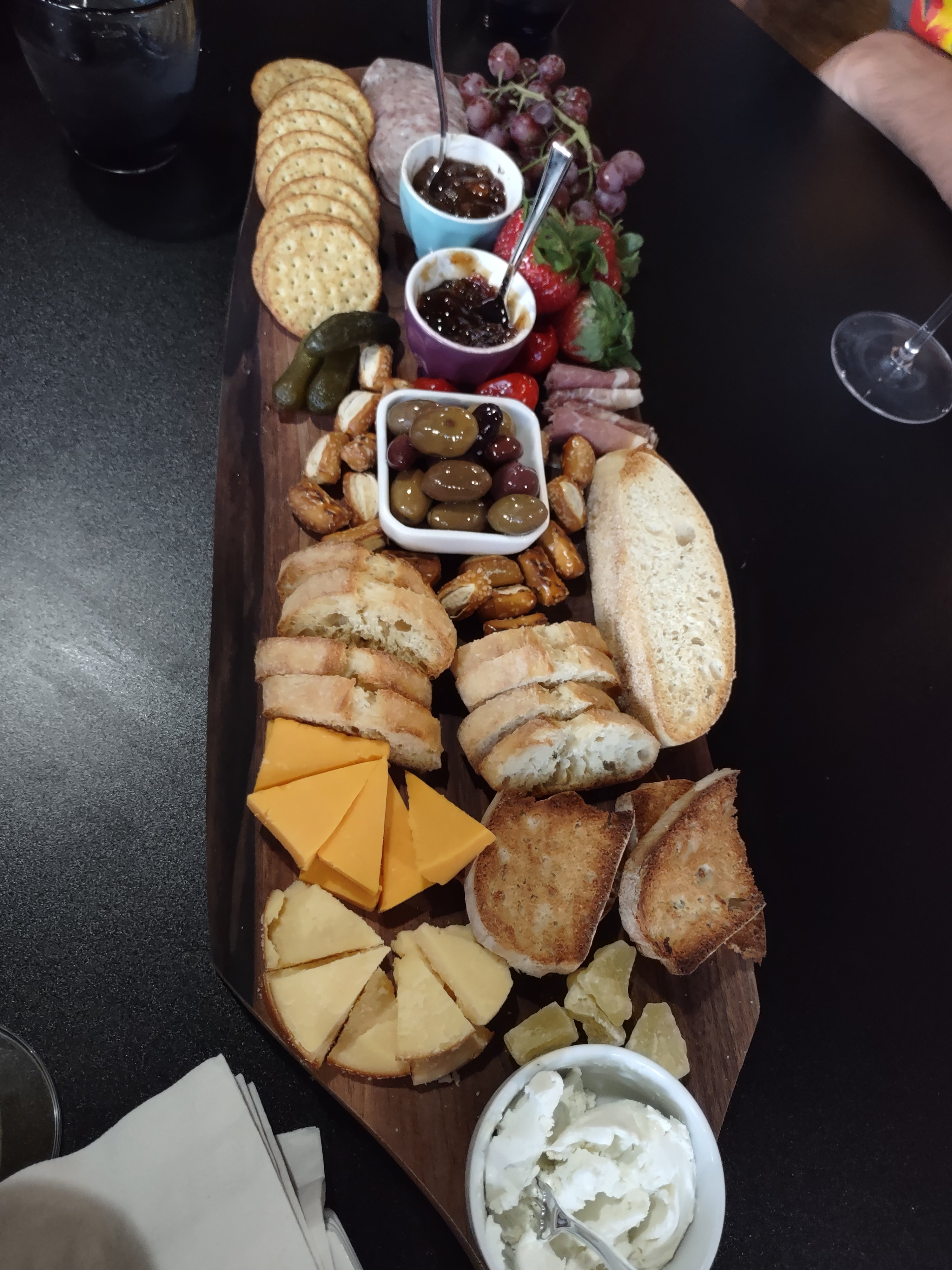 Other: So, while my mom was here we went bowling, and as it turned out there was a special going on, so we got two games for only $5 each. This photo is from the first game of the two. Then we went to this awesome local wine bar that sadly was closing and mom just happened to visit on its final weekend, so we went for one last charcuterie board and a couple rounds of drinks. I finally got to take her to the local coffee shop that we really like going to. They had a lemon cappuccino as a current special and I tried it, and it was surprisingly very lemony but also pretty tasty. And mom had looked up this nature preserve with some hiking trails and a few caves, so we decided to check that out. It was fun…but probably would have been better if we hadn’t gone right after a rain, because it was muggy and the bugs were everywhere. Oh well. It was still a fun time.