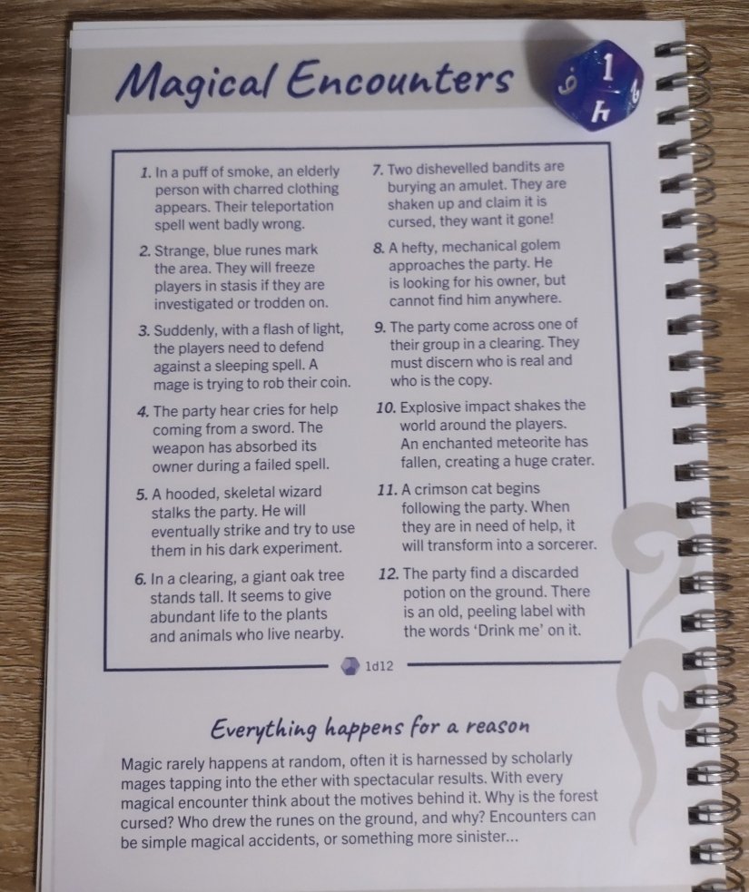 This month I decided to roll the dice on the Magical Encounters page in the Roll & Play book. You can use the dice I rolled, or if you have your own d20, you can roll on the chart yourself. Or heck, if you want to then you can just choose whichever option sparks your interest.