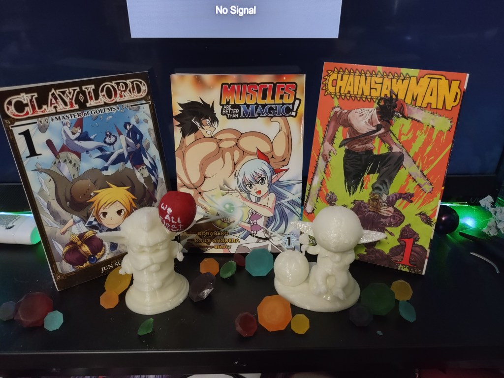 Reading: So I actually got to read a bit this past week. Work was a bit slow so I got to read during a few of my breaks. I managed to reread a few titles since I wanted to get back into them long term. Min-Maxing my TRPG Build in Another World Volume:3, Light Novel, Muscles Are Better Than Magic Volume 1 Manga, Chainsaw Man Volume 1, Clay Lord Volume 1, and Shaman King Volume 13.