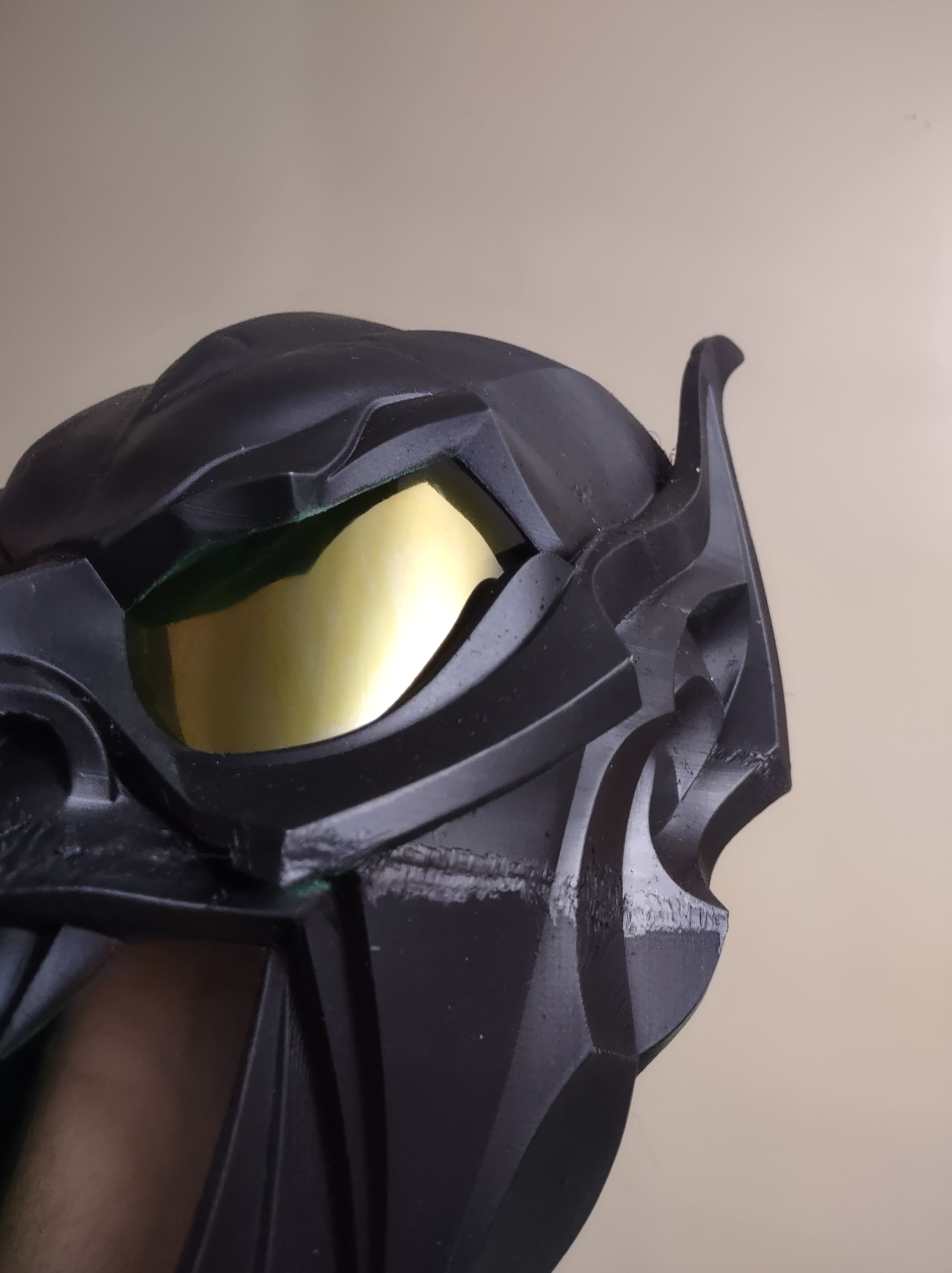 The goblin mask just needs a fresh coat of primer and paint and the eyes and mouth will be covered. After that I will need to figure out how I will make it stay on someone’s head. Maybe some foam on the inside?