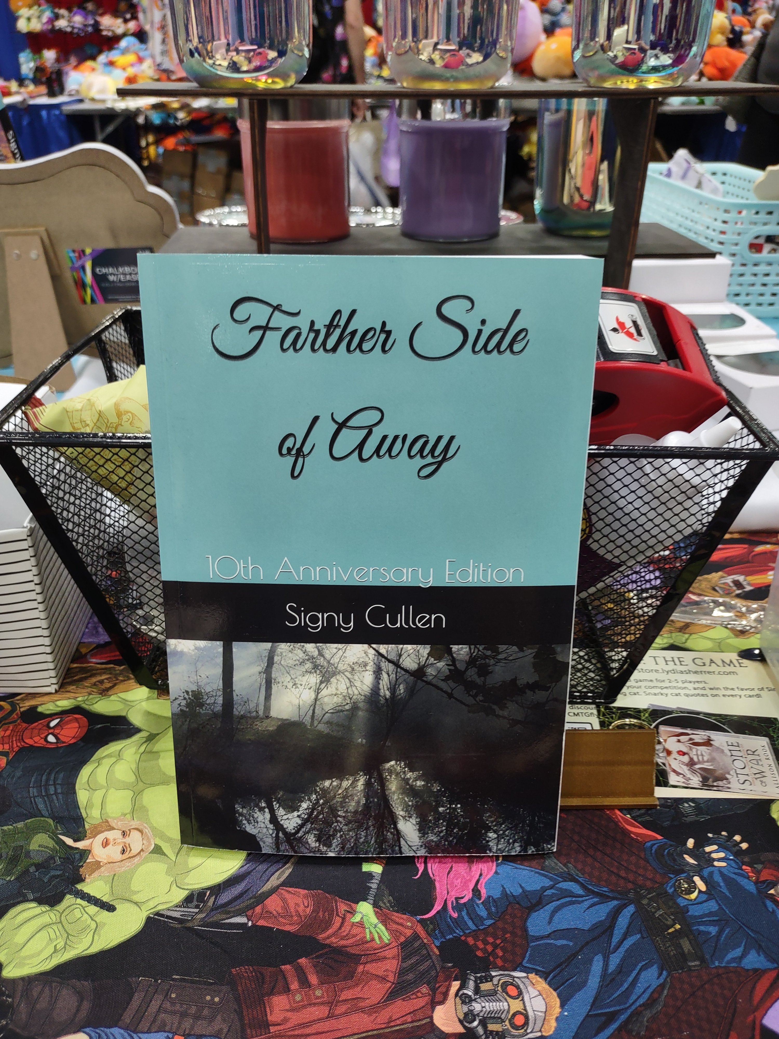 I did pick up a copy of my friends 10th Anniversary Edition of her book, Farther Side of Away, and it is basically the story of Adam and Eve from the Bible but if Adam was a werewolf and Eve was a vampire, and a lot of the issues through them and their descendants are because of those differences. I’m definitely due for a re-read of the book, because it has been years.