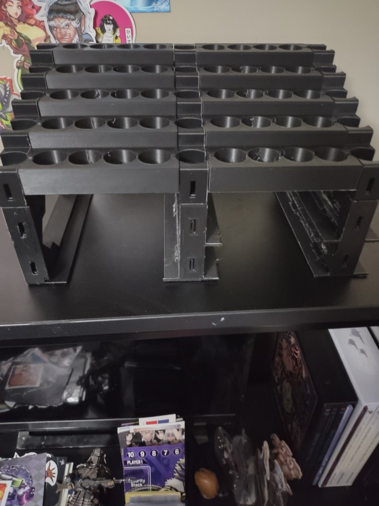 Printing: Been trying to smooth out the seams of the Green Goblin mask and having no luck. So instead I decided to focus on the Infinity Mjolnir I got the stl of from Hex3d’s Patreon. I got that done and I am super happy about it. I was finally able to print enough parts to get some of the PaintPal shelves done and am almost ready to start migrating my dropper bottle paints to said shelves.