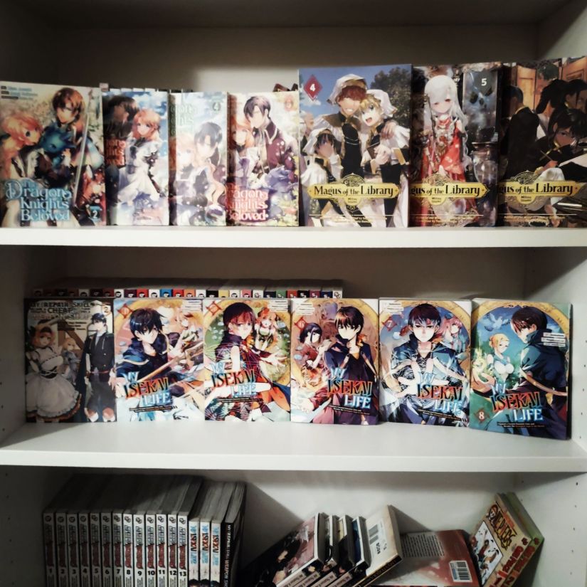 Finally, I might toss in some manga because they are quick reads. I have Volumes 2-5 of The Dragon Knight’s Beloved, Volumes 4-6 of Magus of the Library, Volume 2 of My Repair Skill Became a Versatile Cheat, So I Think I’ll Open a Weapon Shop, and Volumes 4-8 of My Isekai Life. Again, these are all books that I’m hoping to read soon anyway, hopefully by the end of the year.