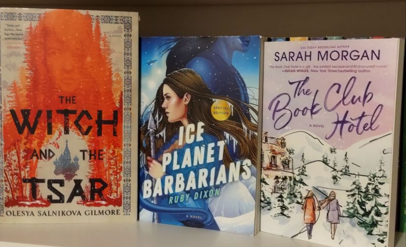 Obviously I’m doubling down on the vibes of the season and picking some books set in frozen wintery locales…so I have The Witch and the Tsar by Olesya Salnikova Gilmore, Ice Planet Barbarians by Ruby Dixon, and The Book Club Hotel by Sarah Morgan.