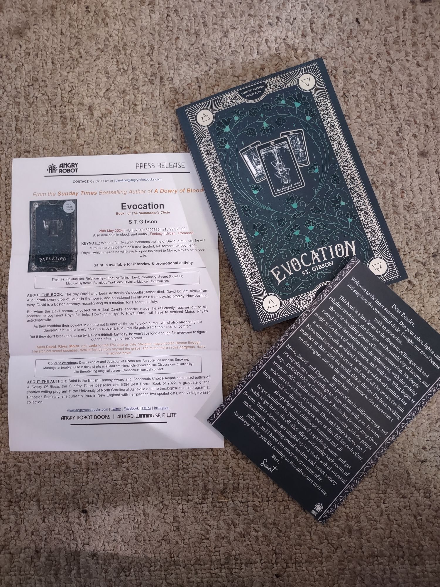 What’s fun about my November haul is that it includes a physical ARC from Angry Robot. I was very excited to participate in the cover reveal for Evocation by S.T. Gibson, and I’m definitely excited to read and review that. Expect my thoughts…probably in a couple months.