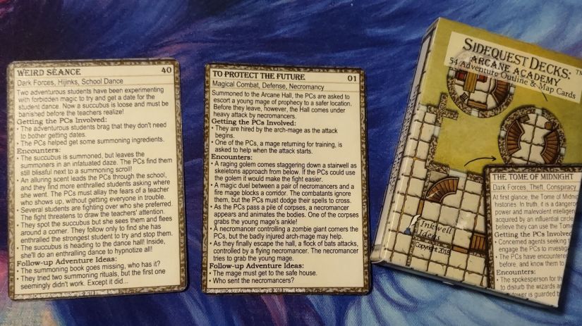 The Sidequest Decks from Inkwell Ideas are another wonderful accessory designed for TTRPGs, but can easily be used for writers as well. This time around I went back to the Arcane Academy deck, and again, I went with two options as prompt inspiration. You can use either option, and you can either use the basic concept at the top of the card, or you can use the various encounters at the bottom of the card to expand upon the adventure/story further.