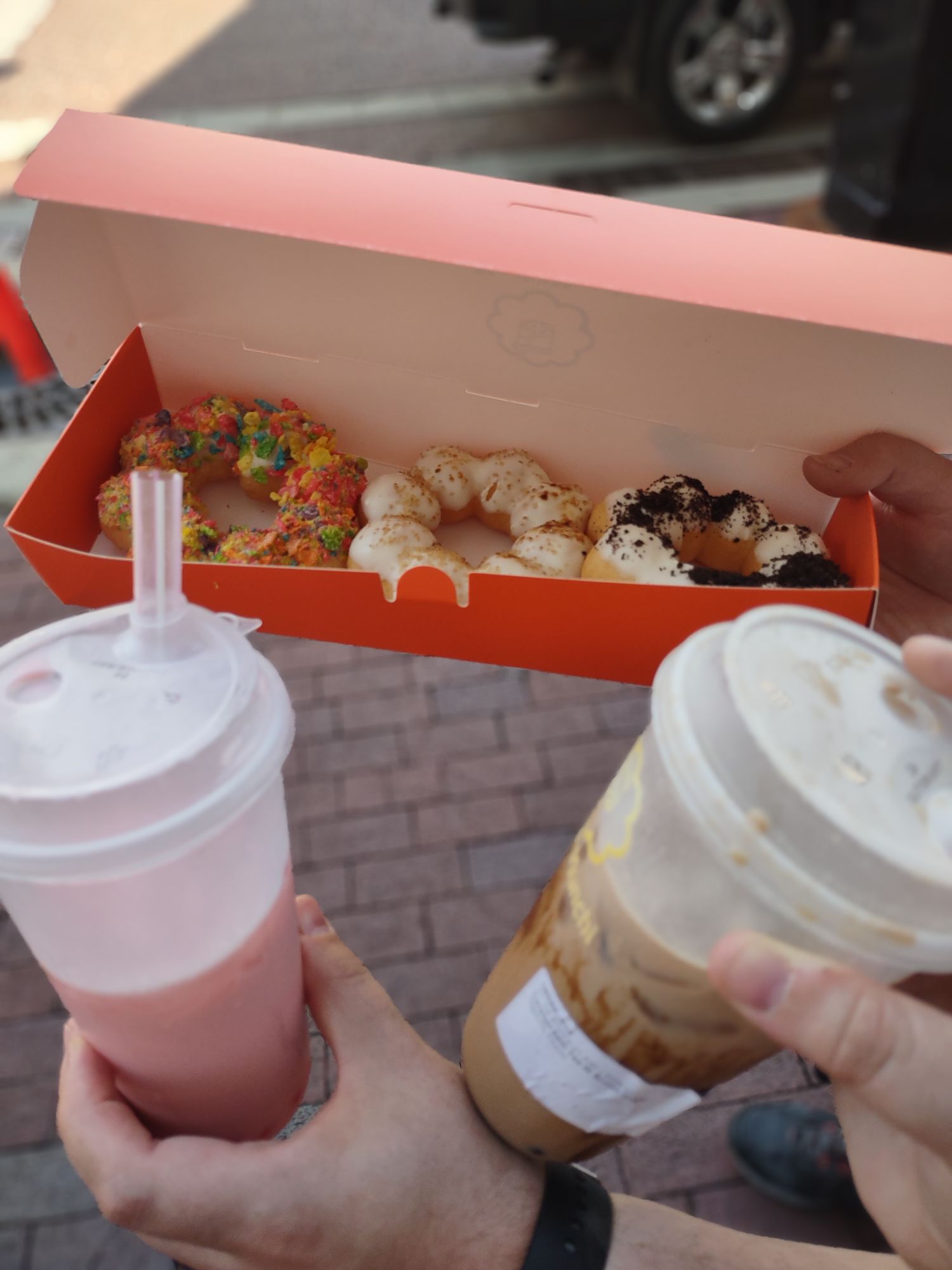 Normally we go to an Irish Pub for some Shepard’s Pie and Bread Pudding, but this year it was closed for a private event on the day we tried to go, so we found a ramen place called Wei Ramen nearby and decided to try it out. There was also a coffee shop on the second floor, and a bubble tea/mochi donut counter just inside…and we went for bubble tea and donuts three times while we were in Indy.