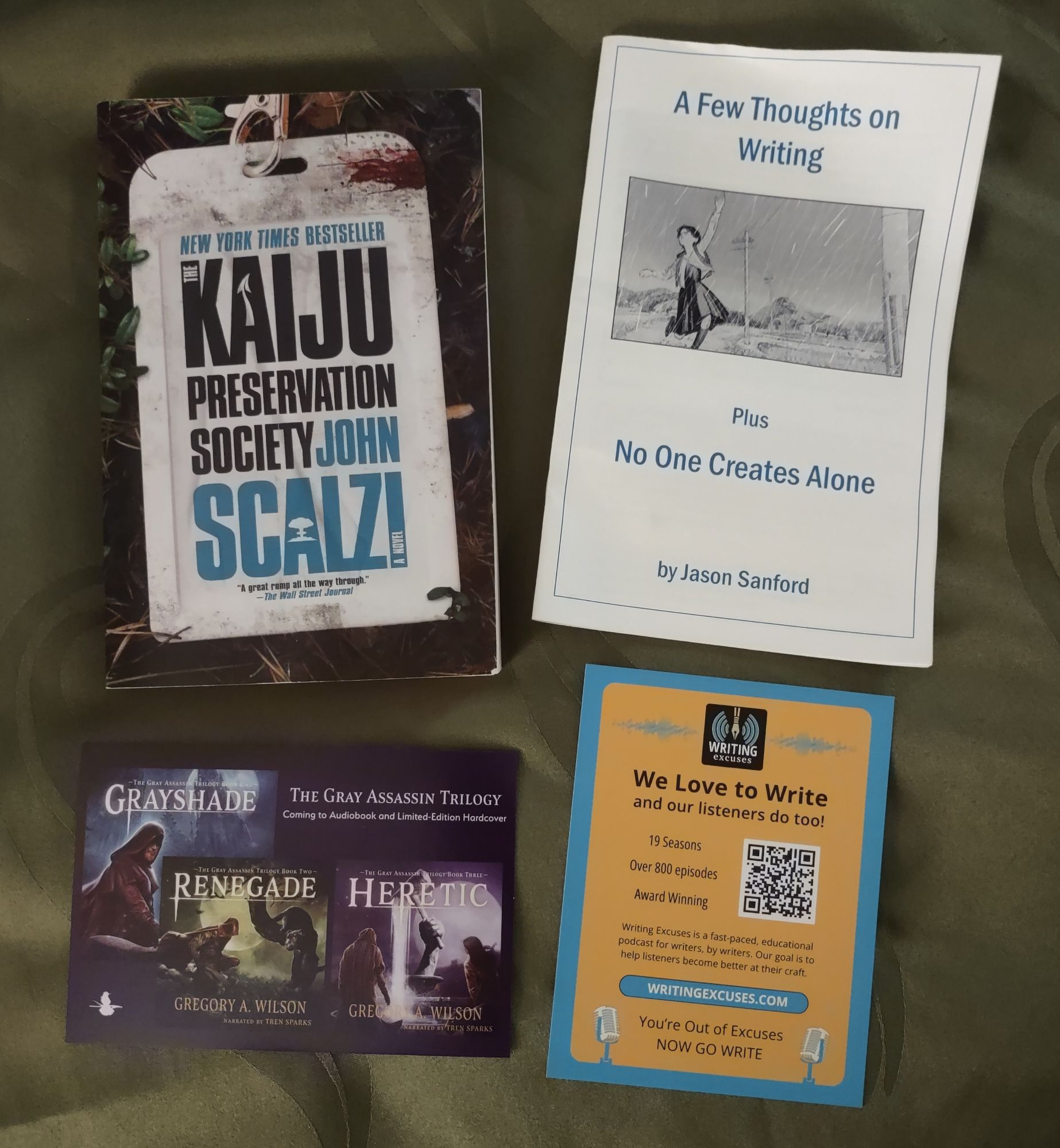 I took four books I owned with me to get them signed by their authors, and that’s always a joy for me. I also picked up the last three Story Engine expansions that I needed to complete my set, so now I only need a few more Booster Packs to have everything. I love using The Story Engine and The Deck of Worlds for writing prompts and creativity boosting, and I can’t wait to have The Lore Master’s Deck, which should be coming fairly soon, to my collection.