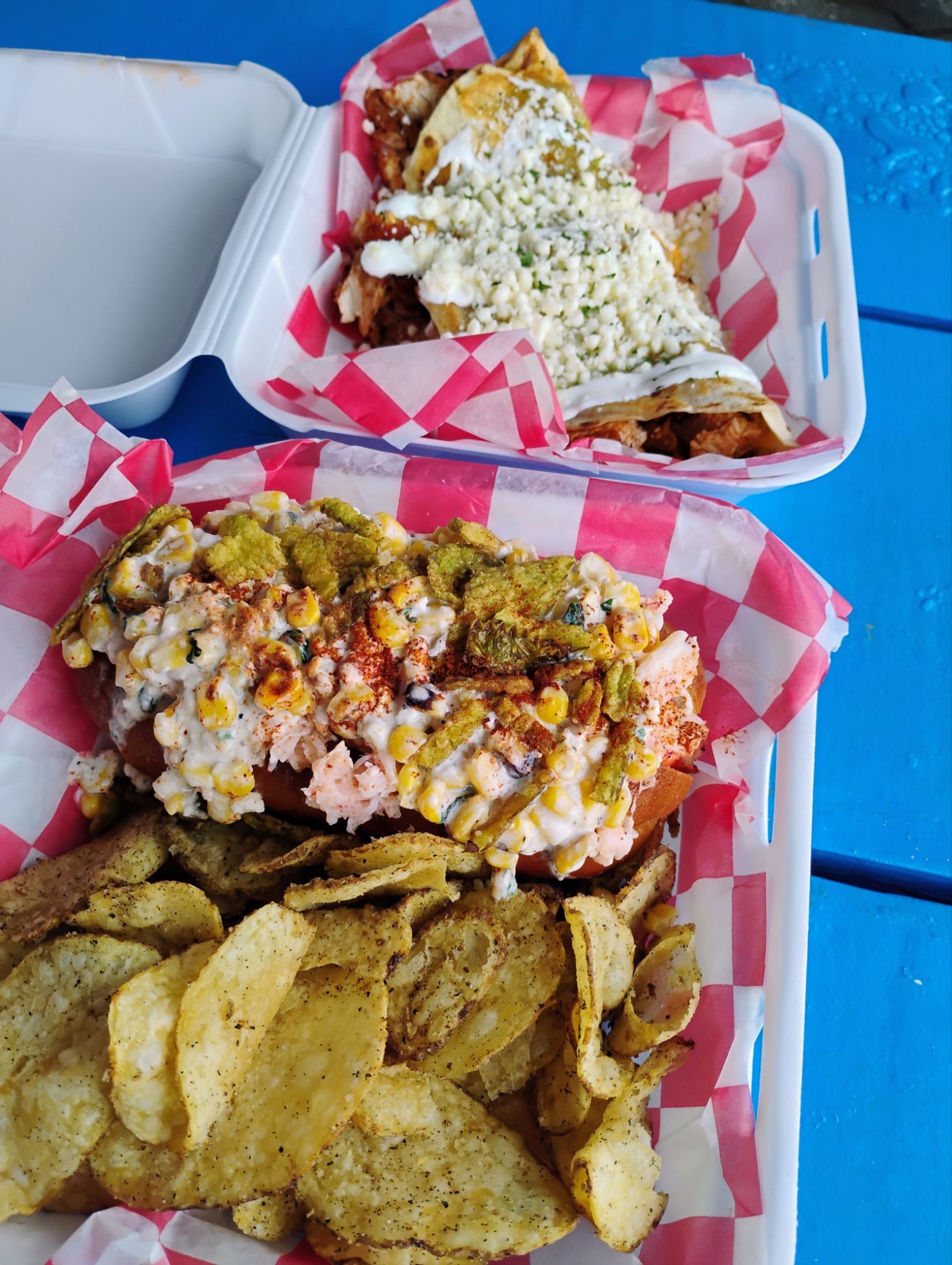 First up, the day started with breakfast at the hotel, or it would have if the selection hadn’t been abysmal. Thankfully we were up early enough that we were able to head towards the convention center and visit the lot and street with all of the food trucks. Naturally, we had to go to our friends at The Naughty Lobstah, which sounds like an odd choice of breakfast, but there was a pretty decent line, so we weren’t the only ones thinking lobster rolls for breakfast. Tator made me an Elote Lobster Roll, which was delicious, and David had a Chicken Quesadilla.