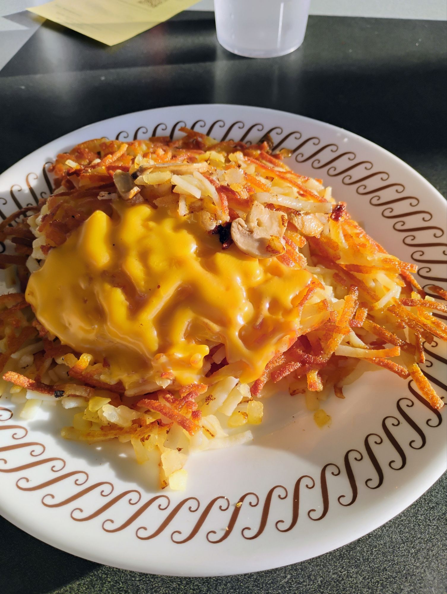 For breakfast today, because it was my birthday, we went to Waffle House, and it was delicious, reasonably priced, and filling (all very important things during Gen Con).