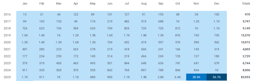 The picture above is my monthly views on the blog from the beginning until the end of 2025. Obviously there have been some periods that were less active than others, but I’m hoping to keep building on my progress. I want to try and post more regularly, and hopefully bring back blog series like Weekend Writer, Manga Monday, and Tabletop Tuesday. I don’t expect any of those series to post up weekly, but I do miss doing them.